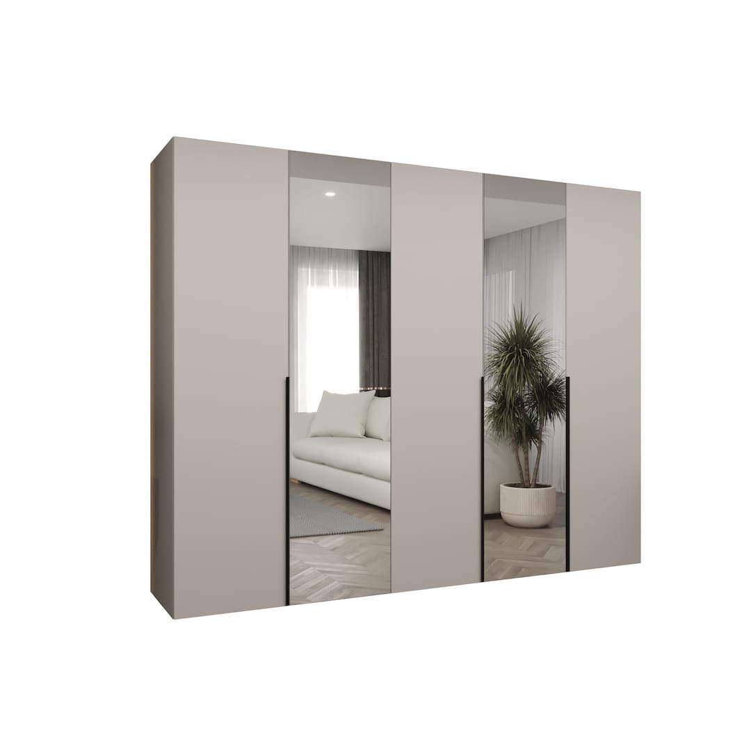 Create an elegant and organized space with the Alicante II Hinged Door Wardrobe. Featuring five hinged doors, including two with mirrors, it combines functionality with style. Inside, discover three shelves and three hanging rails, perfect for structured storage. The sleek black aluminium handles and soft-close hinges offer a touch of luxury, while the high-quality laminated board ensures durability. This wardrobe's modern design complements any décor, with matching furniture available to complete your look.