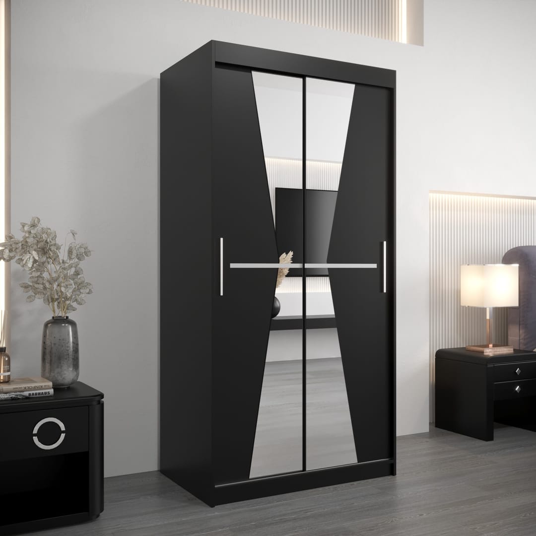 The Morocco Sliding Door Wardrobe collection offers a modern and spacious storage solution with mirrored sliding doors that enhance room brightness and openness.