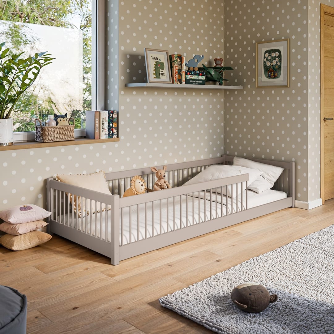 Enclosed with safety spindles on every side, the Pedro Bed is perfect for children transitioning to their own space. Its low-profile frame offers easy access, while the solid pine wood construction adds long-lasting strength. Complete with a slat kit and available in two different colours, it’s a practical, protective, and stylish addition to any child’s bedroom