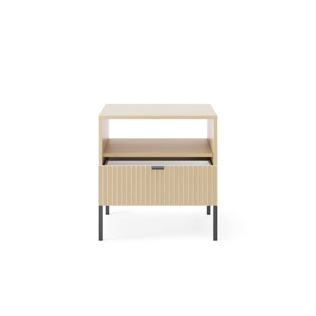 Elegant and compact, this stylish Nova cabinet will be the perfect complement to your living space. Featuring one open compartment and one drawer for storage, it has been designed to blend in effortlessly with any modern or contemporary decor. Made from 16mm laminated board with ABS edging, it is available in three different colours including white and black - ideal for creating a timeless look that complements your home.