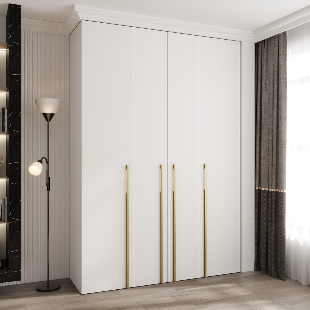 The Como III Hinged Door Wardrobe 170cm is a practical and stylish storage solution for medium-sized bedrooms. Its ample height and moderate width provide efficient storage without overwhelming the space. With four hinged doors, sixteen shelves, and two hanging rails, it ensures robust storage options. Crafted from 16mm high-quality laminated board, this wardrobe offers a sleek look with enhanced durability from PVC finished edges and refined gold metal handles.