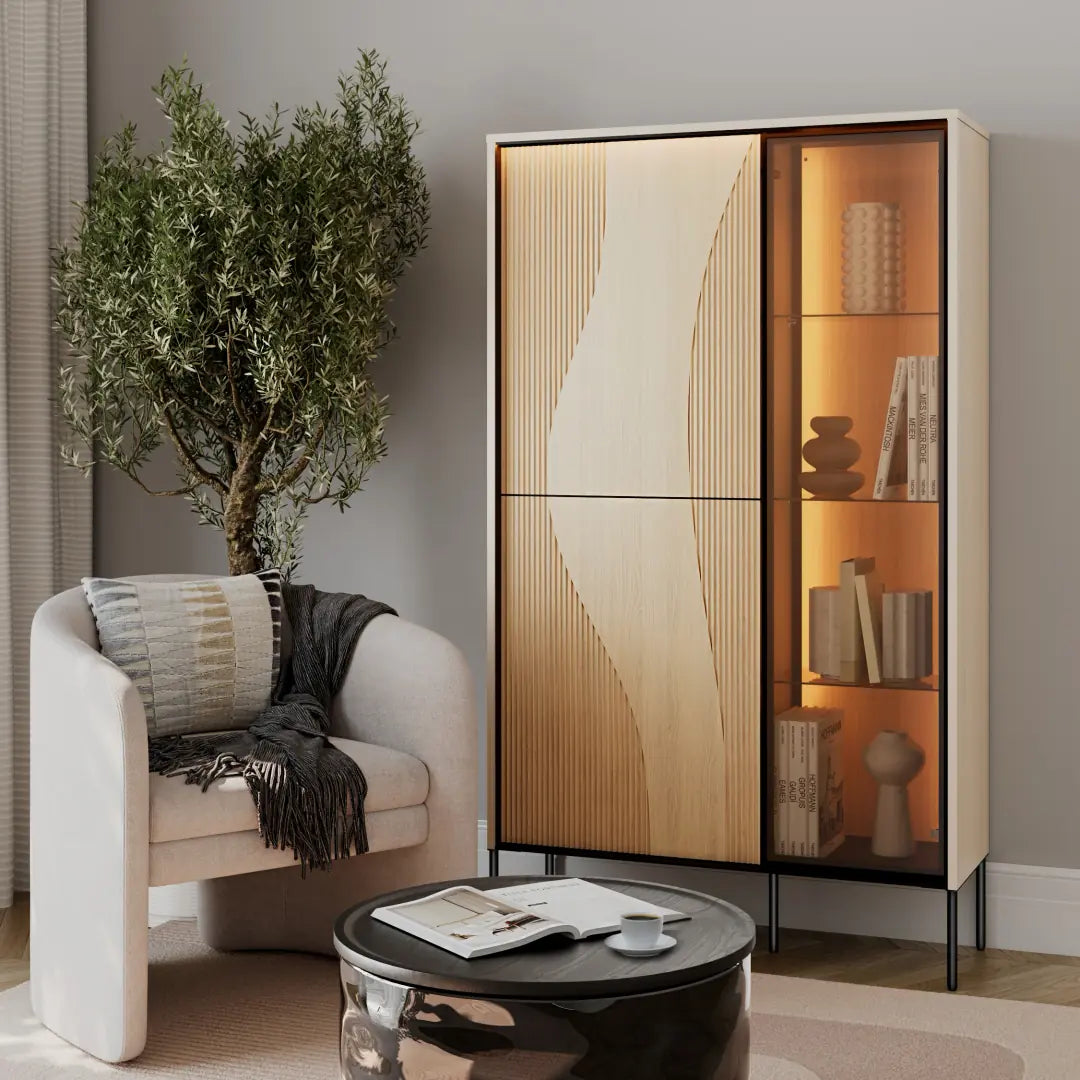 Flow [Living Room] is a contemporary living room furniture collection defined by flowing lines and refined form. Distinctive grooved fronts create depth and movement, transforming each piece into a statement feature. Natural finishes add warmth to the modern silhouettes, while tall, slender proportions and slim legs give the collection a light, elegant presence - perfect for stylish living spaces that favour bold design and timeless appeal.