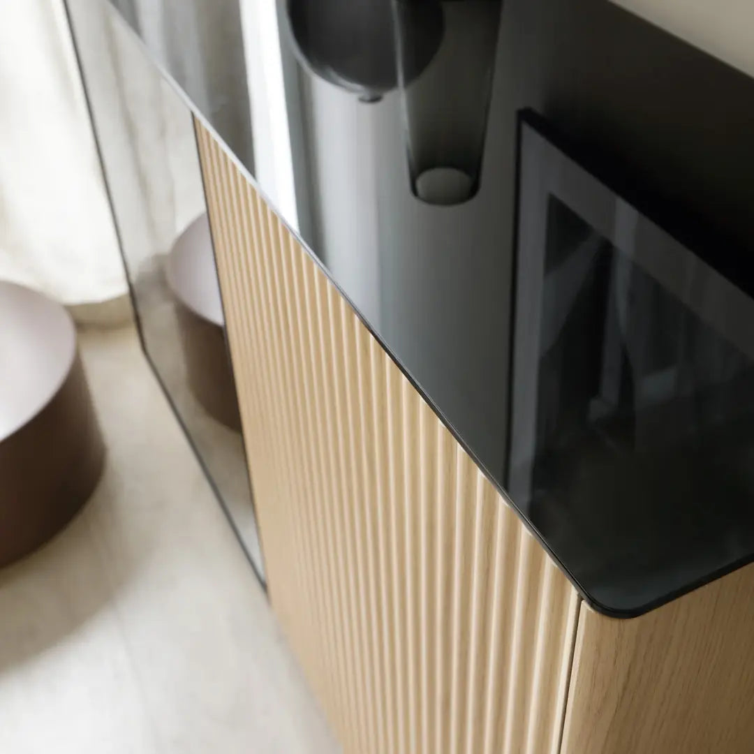 The Orta [Living Room] brings minimalism, sophistication, and functionality together in perfect harmony. Defined by clean, grooved fronts in a timeless cashmere hue, each piece exudes modern elegance while remaining effortlessly versatile for living rooms, dining areas, or bedrooms. Refined black glass accents on fronts and tops introduce subtle contrast, while integrated LED Lighting highlights decorative displays, creating an atmosphere of understated luxury. Orta [Living Room] isn’t just furniture - it’s a curated space designed to inspire!