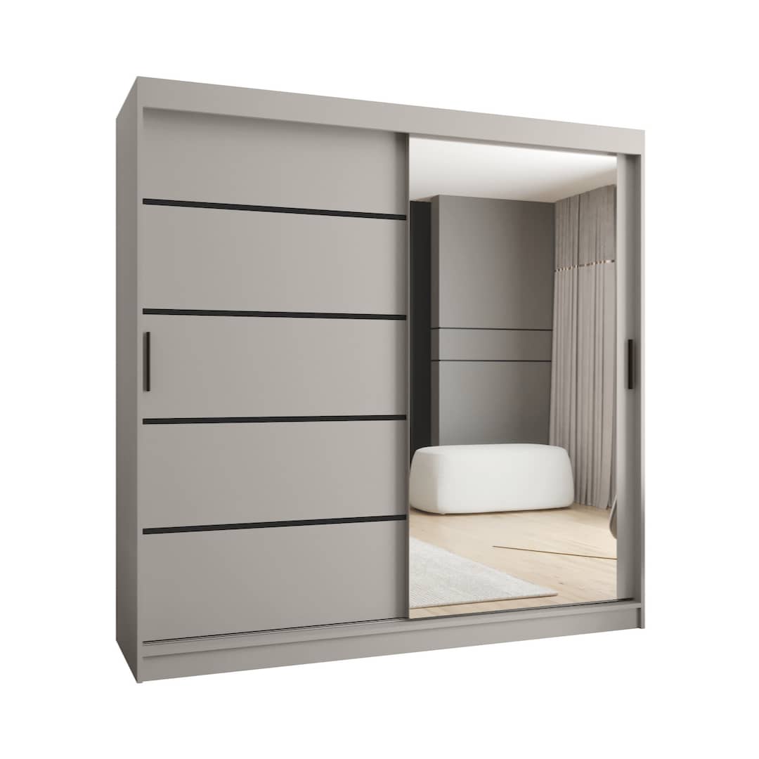 Maximise bedroom organisation with the Rubino V2 Sliding Door Wardrobe 200cm. Its two sliding doors, one mirrored, reveal generous storage inside. With eight shelves and two hanging rails, it keeps clothing collections and accessories well arranged. The mirror reflects light to enhance the room’s sense of space. Plus, the smooth sliding panels move without swinging into the room, conserving floor area. Finished in cashmere, this wardrobe blends tidy function with understated style.