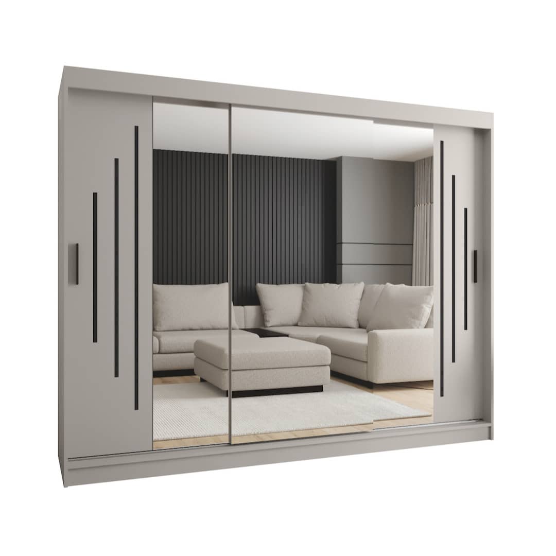 The Rubino Sliding Door Wardrobe collection combines a sleek cashmere finish with practical features for contemporary bedroom storage. Perfect for those needing spacious, modern storage with a clean look, Rubino [Wardrobes] deliver durability, practical layouts, and aesthetic appeal in both compact and generous room settings.