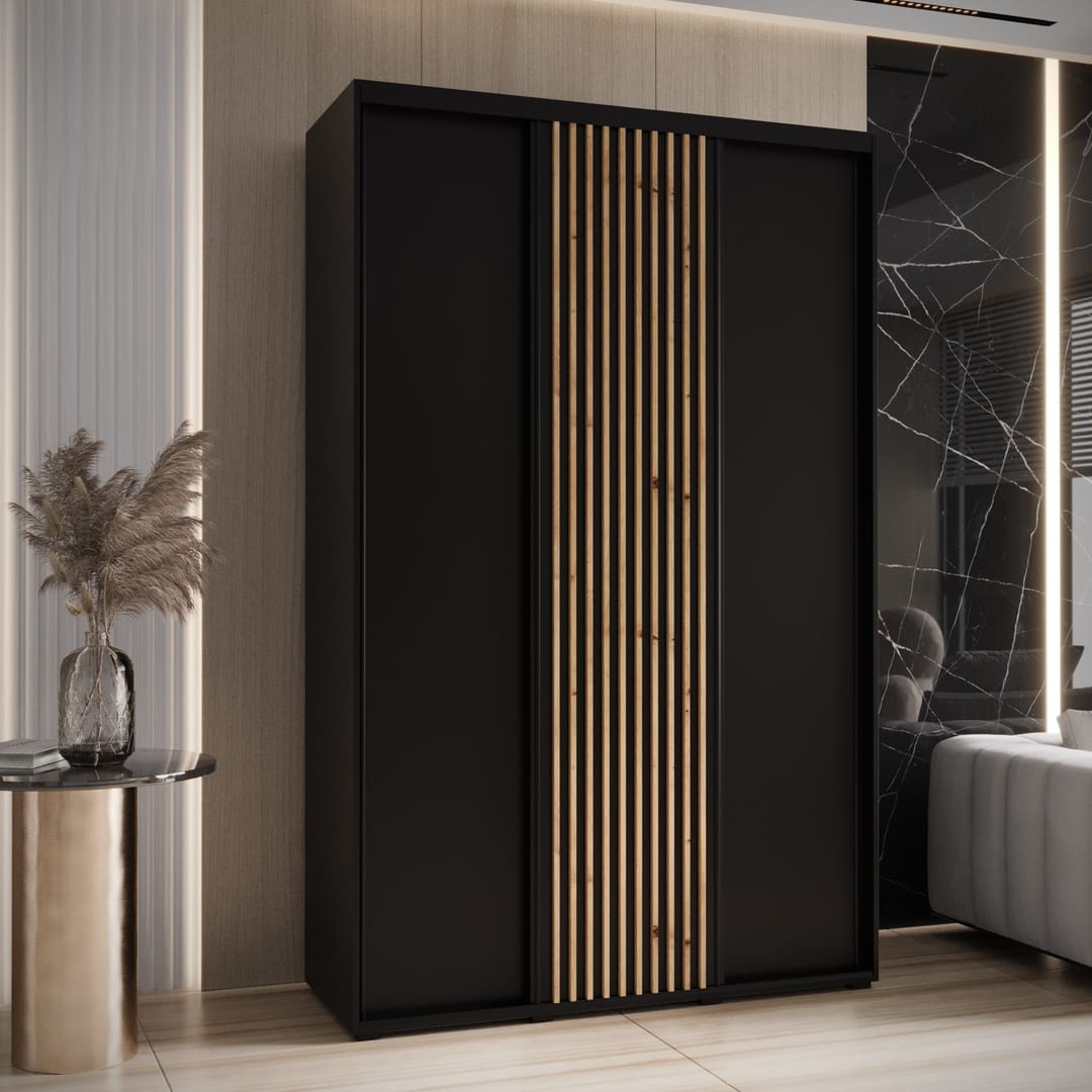 Compact yet versatile, the Sapporo I Sliding Door Wardrobe 150cm is designed for optimal organization in smaller living areas. Featuring three sliding doors, it houses two hanging rails and six shelves, maximizing the use of space without compromising on style. The wardrobe is built from laminated board and includes plastic handles and PVC edging, with optional decorative strips for a customized look. This model proves that efficient storage solutions can also be elegantly designed to suit modern living spaces.