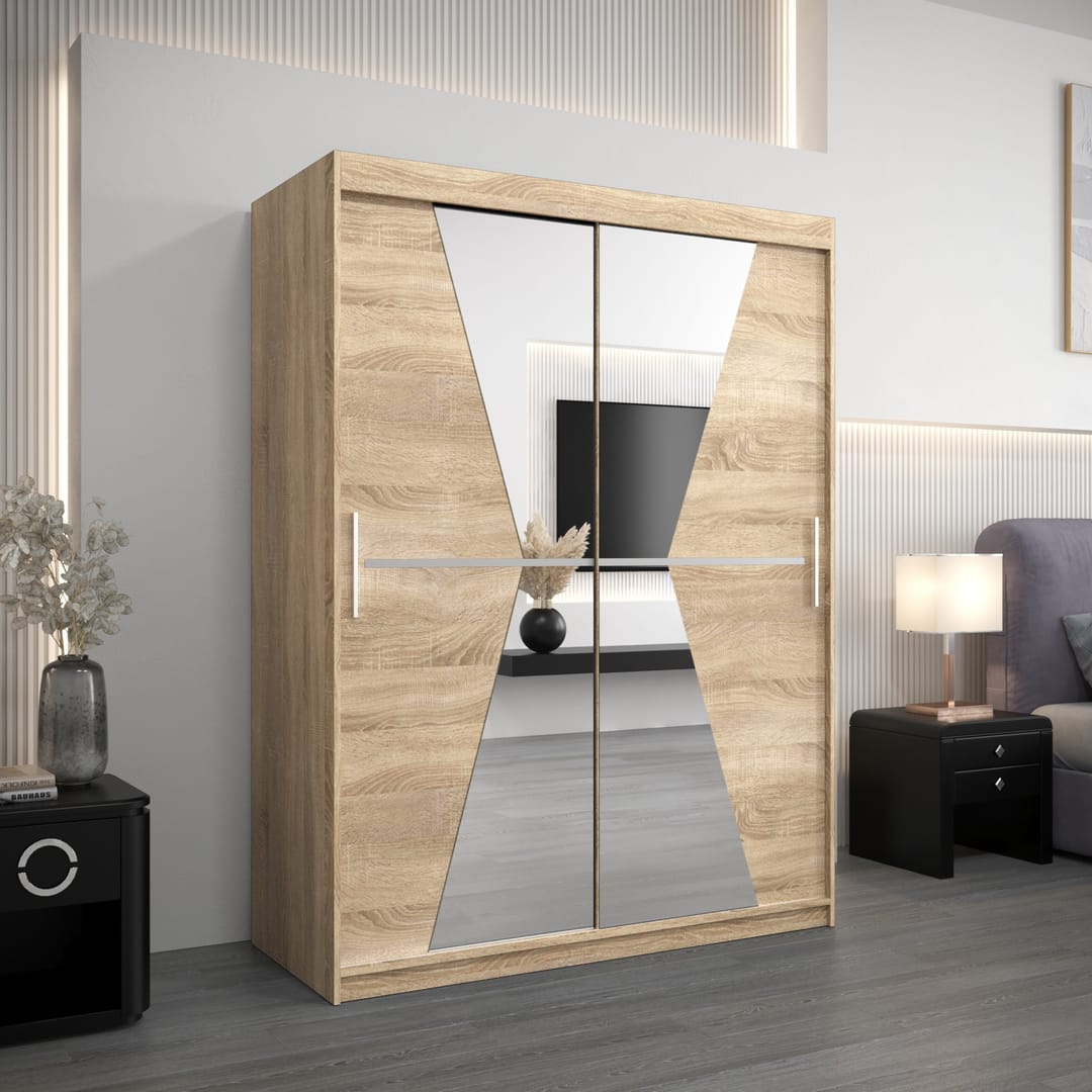 The Morocco Sliding Door Wardrobe collection offers a modern and spacious storage solution with mirrored sliding doors that enhance room brightness and openness.